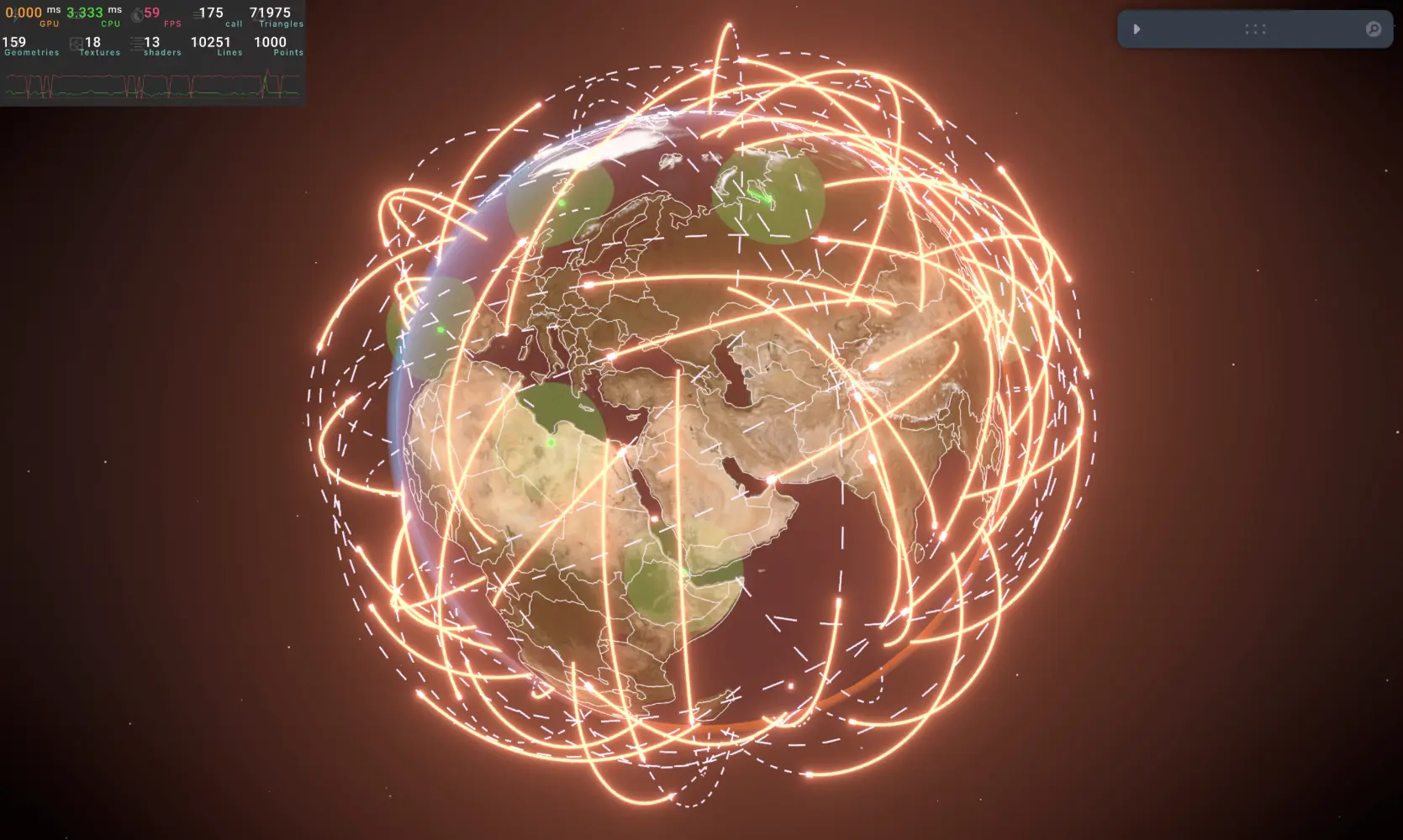 we have every interceptor location at a given time using the state manager, we will need to set a “detection radius” to the interceptors (in my case it’s unified value), we also have every missile path (curve).